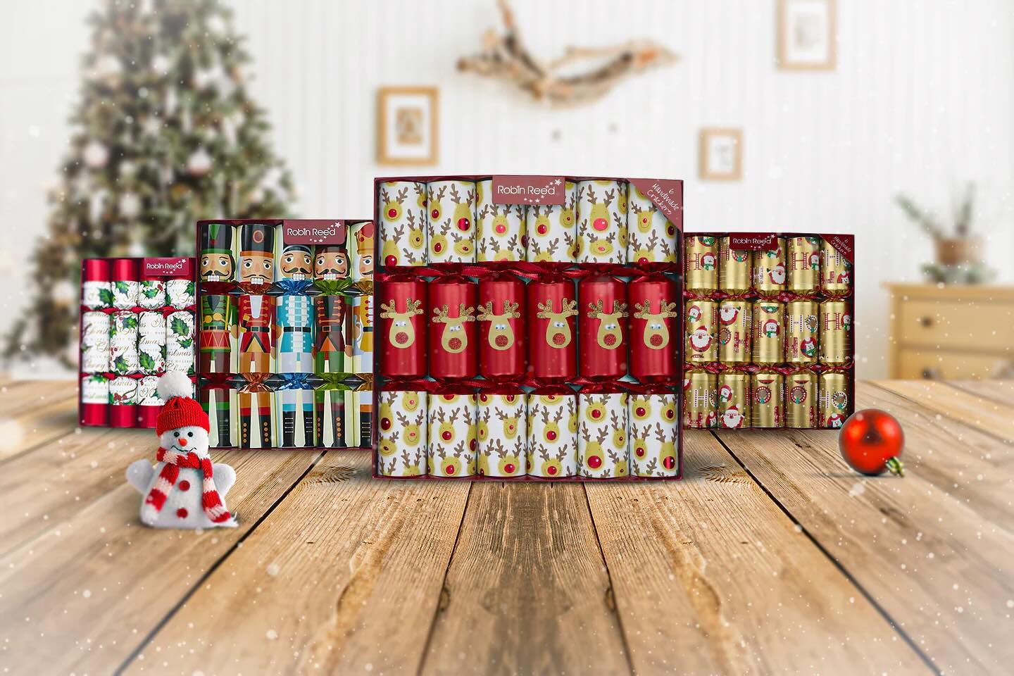 Smellbonbon i hvit og gull - 12 stk - reinsdyr- og juletredesign