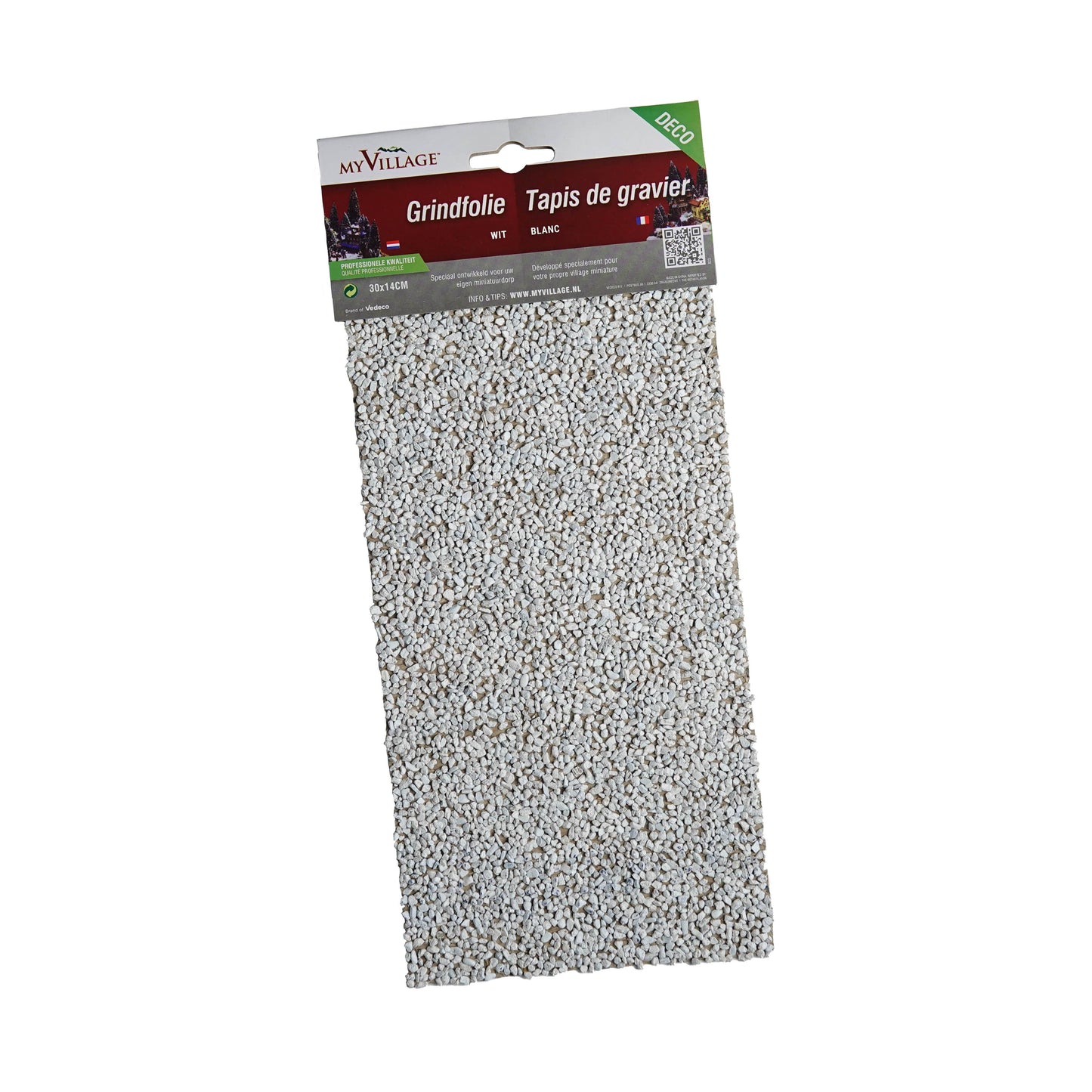 Grus-matten med hvite småstein er 30 cm lang og 14 cm bred. Grusmatten kan skjæres til og brukes til for eksempel å lage stier eller til å fore fjell. Dette gjør miniatyrlandsbyen din mer naturlig og realistisk. Kan også brukes til mange andre hobbyer eller kreative prosjekter.