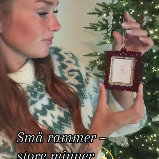 De søteste bilderammene til juletreet. I akryl med fløyel sort farge og gull glitterdetaljer. Så søt gave til en du er glad i!
