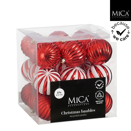 Disse uknuselige julekulene i klassisk rødfarge kombinerer sikkerhet og eleganse. Med 27 kuler i pakken og en diameter på 6 cm eller 8 cm, er de ideelle for barnefamilier, kjæledyreiere eller offentlige rom der sikkerhet er viktig. Laget i slitesterk plast med flott glans og matt miks – klare for treet, dekorfat eller vindusutstilling.