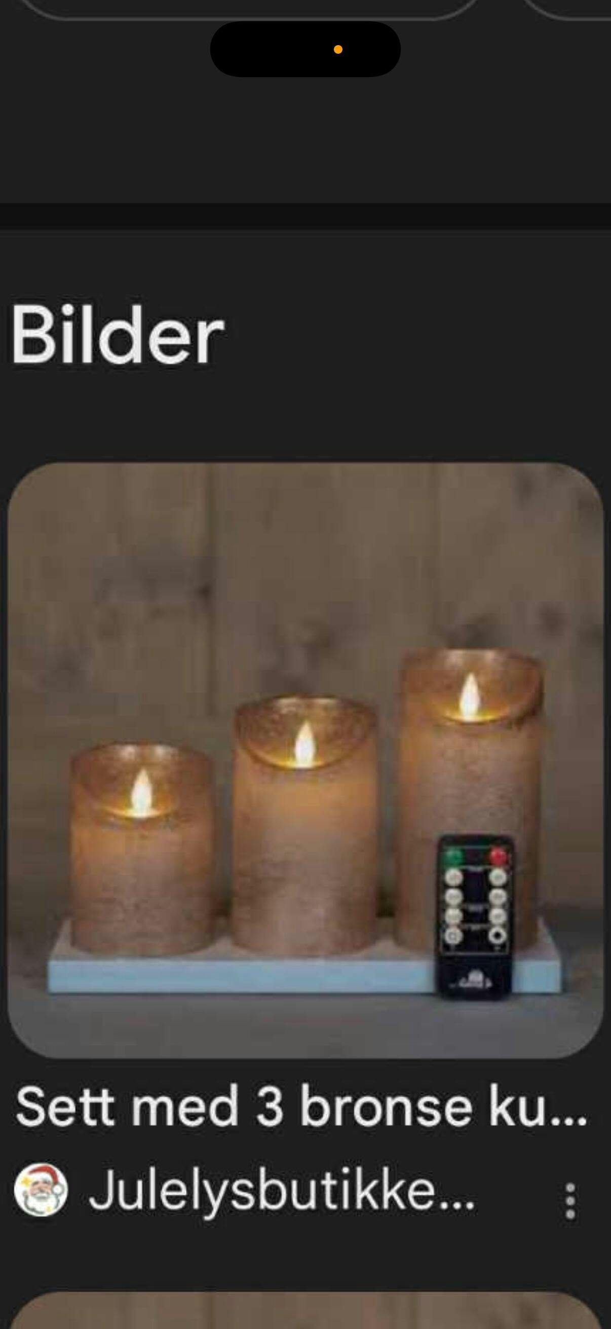 Sett med 3 bronse kubbelys. Ladeplate og bevegelig flamme